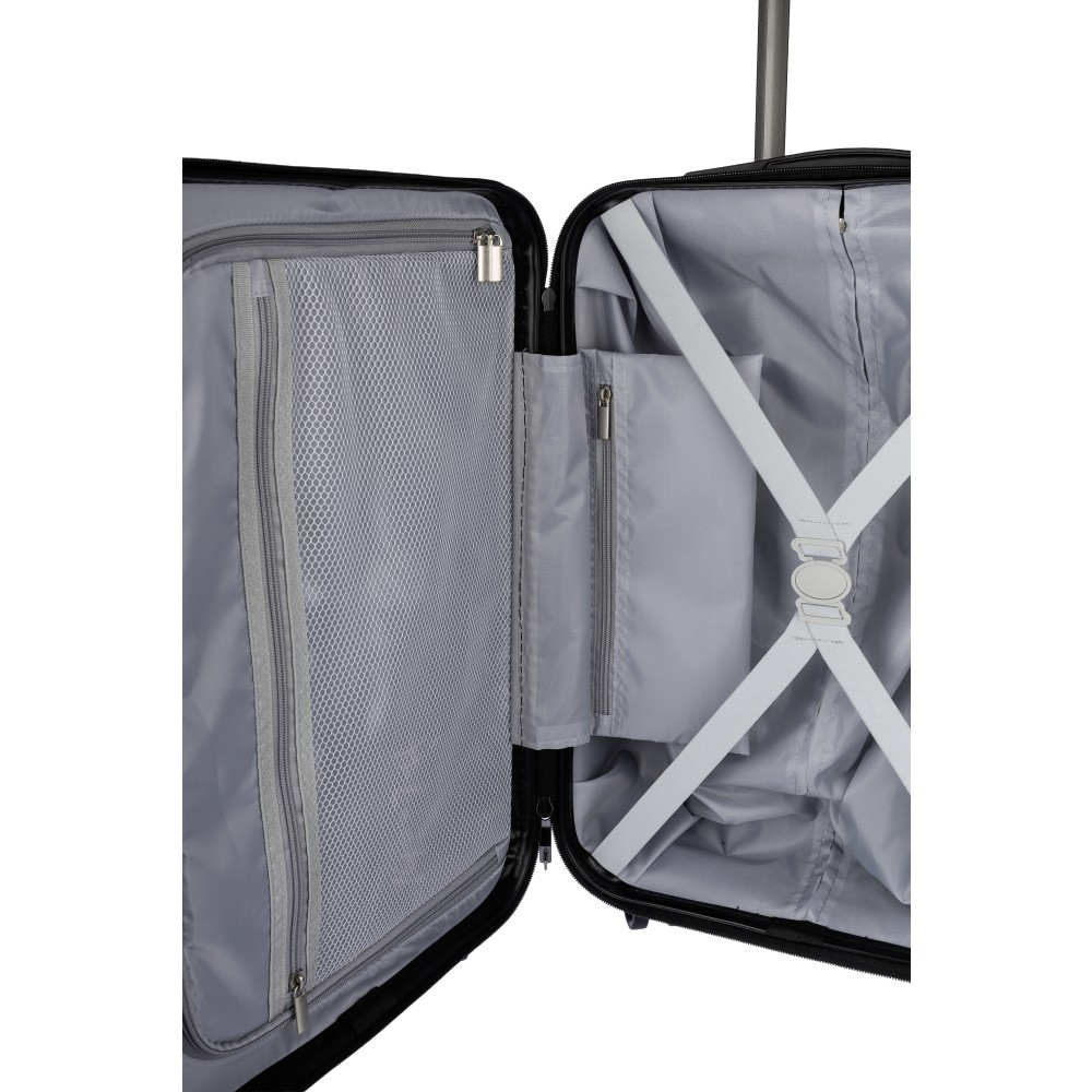 Gurulós bőrönd 8 kerékkel és háromszintű fogantyúrendszerrel. Beépített számzár és külön lapocska a lézergravírozáshoz. USB porttal.