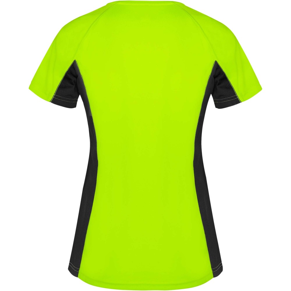 Roly Shanghai rövid ujjú női sportpóló, fluor green, solid black
