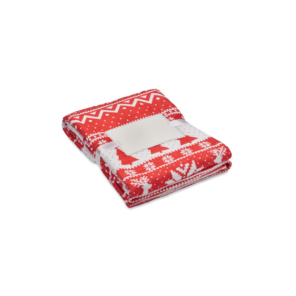 190 g/m2 vastag RPET korall fleece takaró téli mintával. Szalaggal átkötve, emblémázható kártyával szállítjuk.