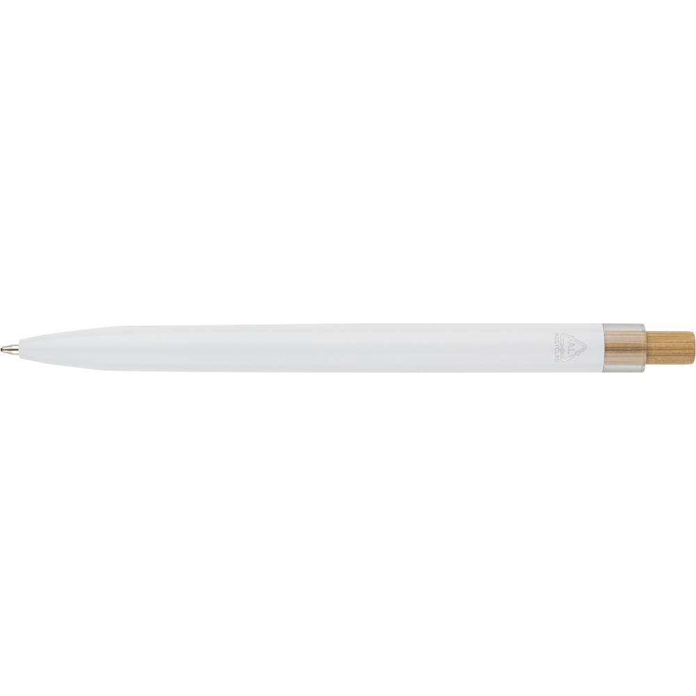 Újrahasznosított alumíniumból készült, lakkozott tollszett golyóstollal és rollerball tollal. A golyóstoll bambusz nyomógombbal, rPET díszítéssel és fém klippel rendelkezik, míg a rollerball toll bambusz/rPET kupakdíszítéssel és hozzá illeszkedő klippel. A tolltesten gravírozott recycled (újrahasznosított) alapanyagra utaló logó található mindkét toll esetében. A golyóstoll kb. 700 méter, a roller toll kb. 500 méter íráskapacitású, mindkettő kék színű tollbetéttel. Színes, újrahasznosított kartonból készült ajándékdobozba csomagolva.