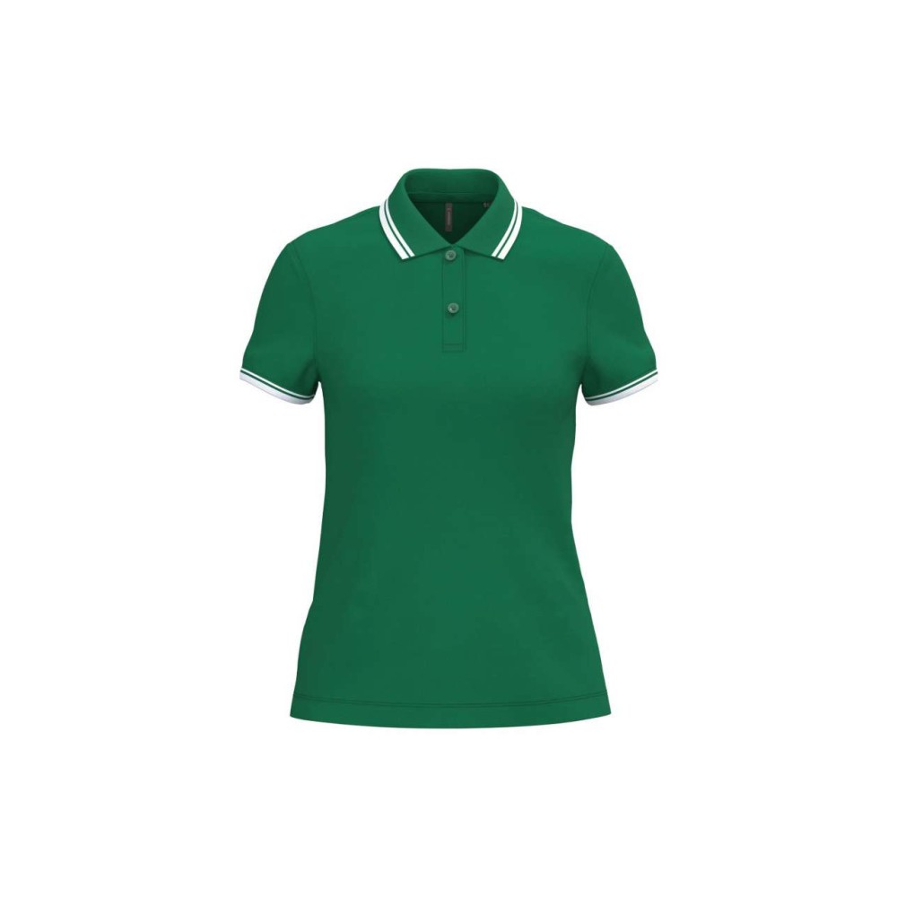 Kariban női rövidujjú galléros póló, Kelly Green/White